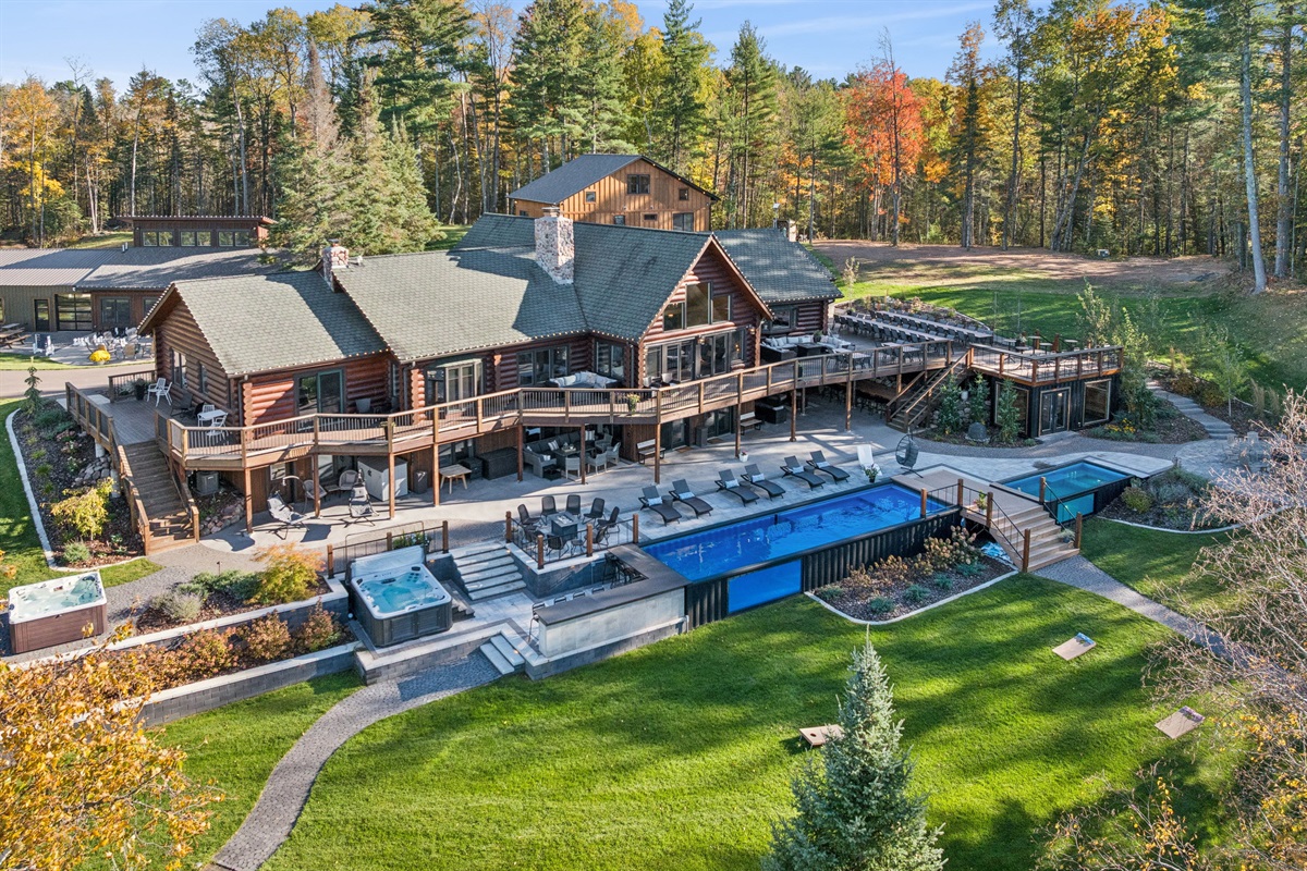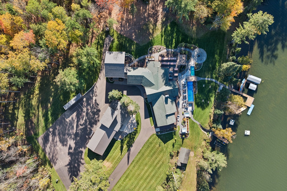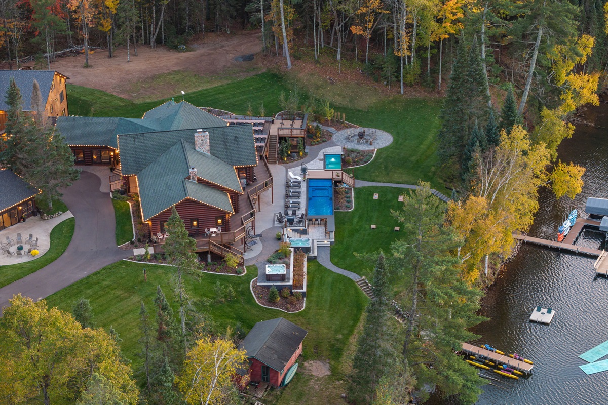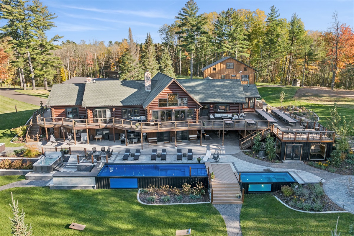 When the entire Long Lake Shores estate is rented, guests enjoy exclusive and private use of the full property. When The Lodge or The Guesthouse are rented individually, exclusivity does not apply and all amenities outside of the main accommodation (The Lodge or Guesthouse) are considered shared (The Clubhouse, theater, game room, indoor pickleball court/flex space, pools, hot tubs, docks, acreage, trails, etc.. may be shared with other guests staying on the property.