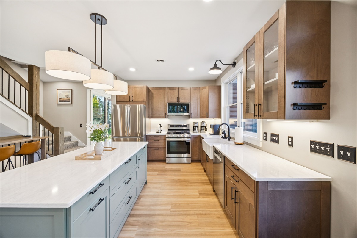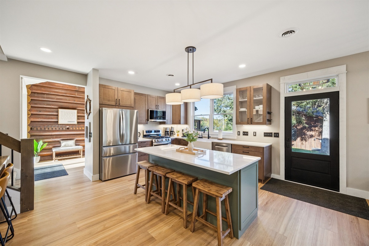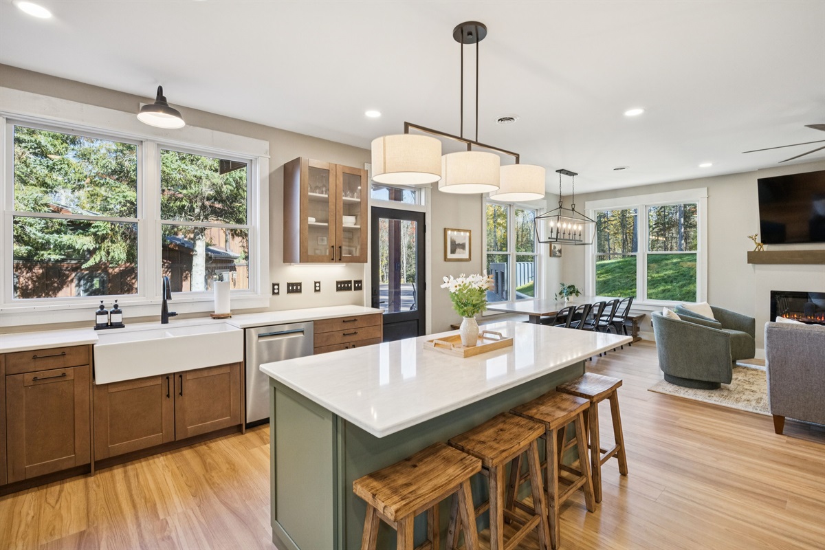 • Kitchen – Featuring a farmhouse sink, dishwasher & a pizza oven for a fun and easy dining experience.