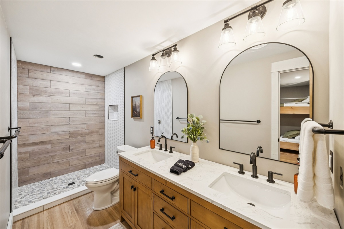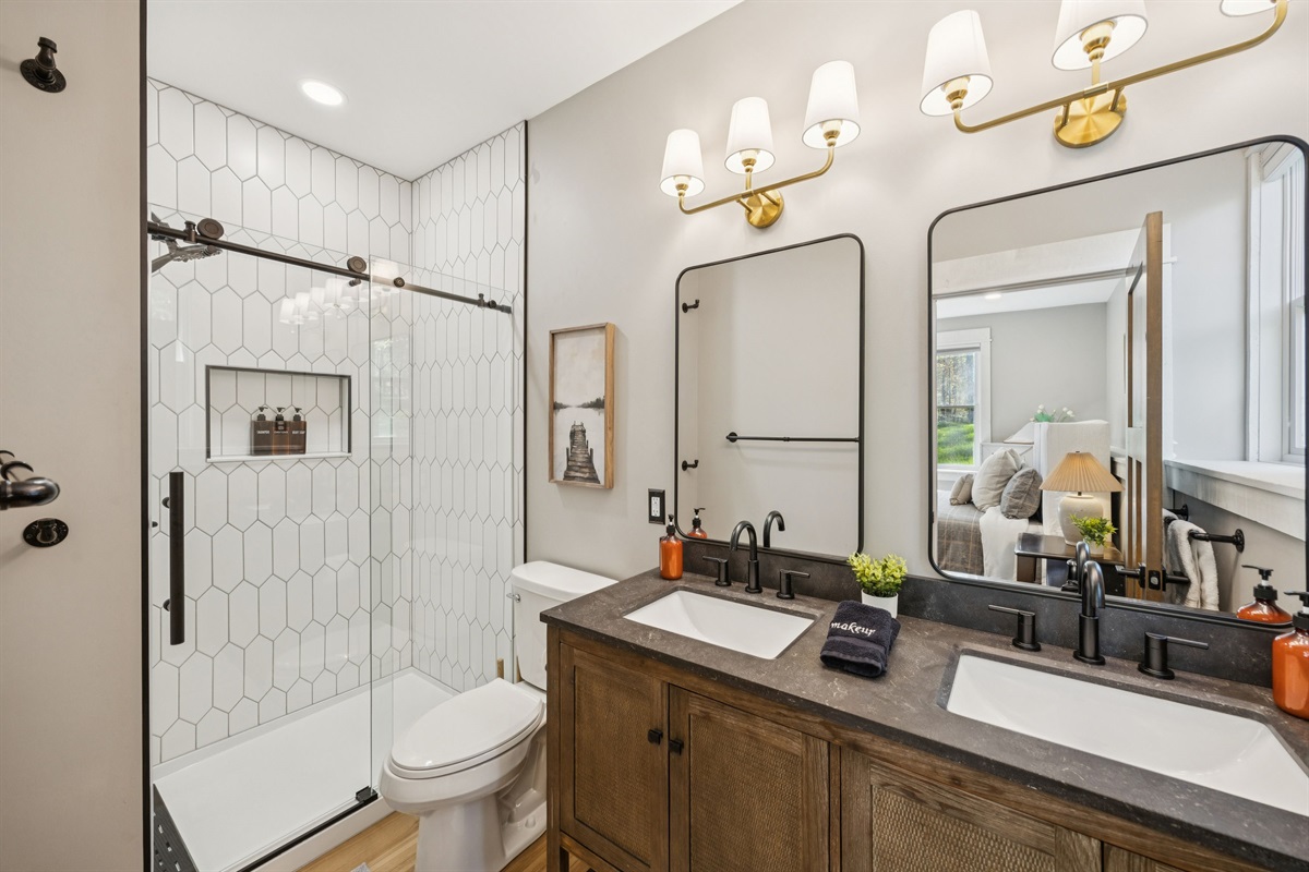+ Bathroom 16: 5'x12' | Double Vanity | Custom Tile Shower | Toilet